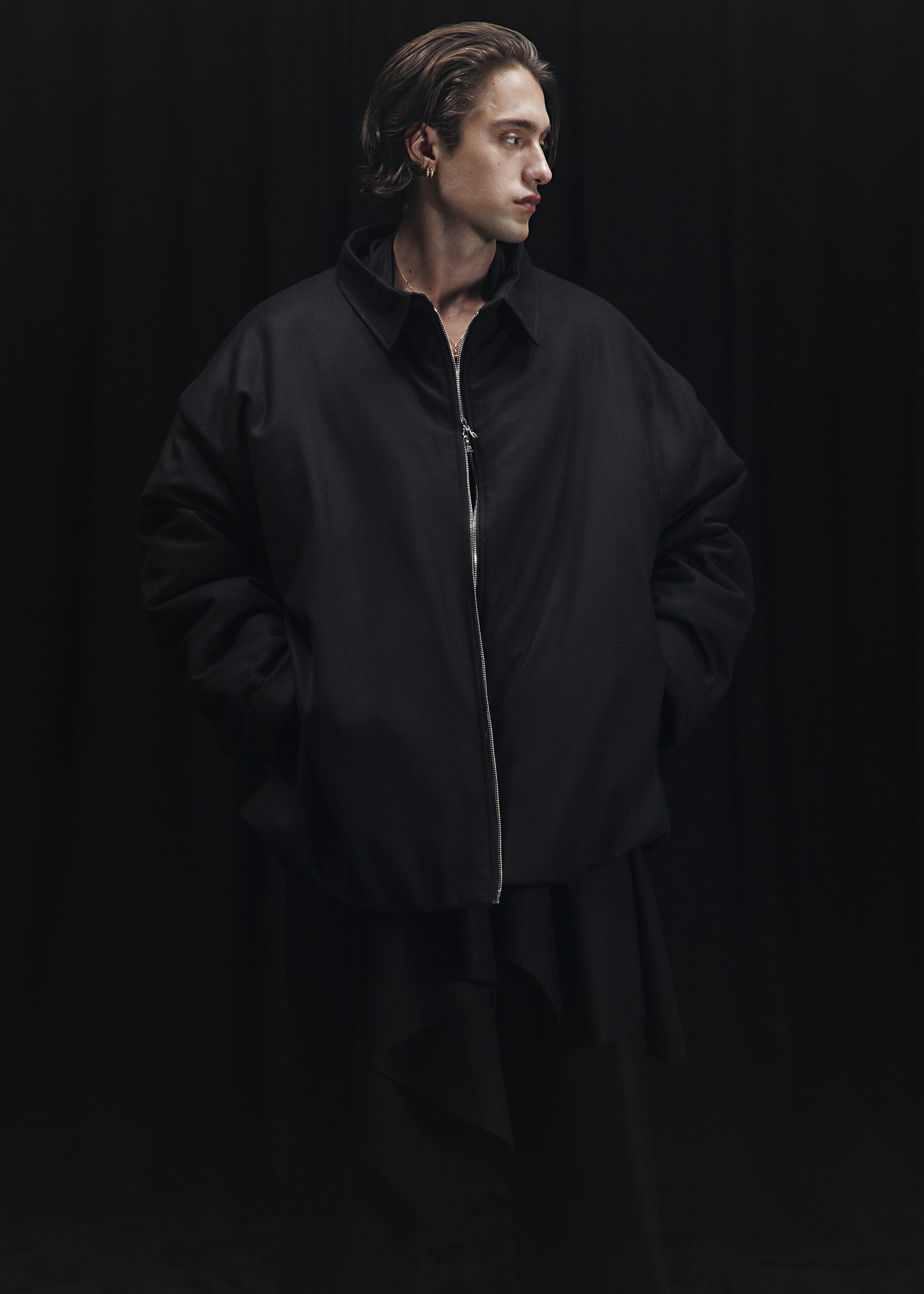 Designed to sit between the utilitarian and the refined, this quilted overshirt draws from function but reframes it through the codes of The Giraffe Concept. Crafted from wool flannel and fully lined with heavyweight Peruvian pima cotton jersey, it offers warmth without visual weight. The quilted structure adds controlled volume, while the two-way Riri zipper allows for versatility in wear. Finished with two hidden side seam pockets and a black-on-black vinyl graphic — subtle, almost imperceptible. Essential, relaxed, and sophisticated: a considered take on layering.